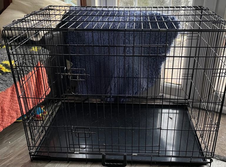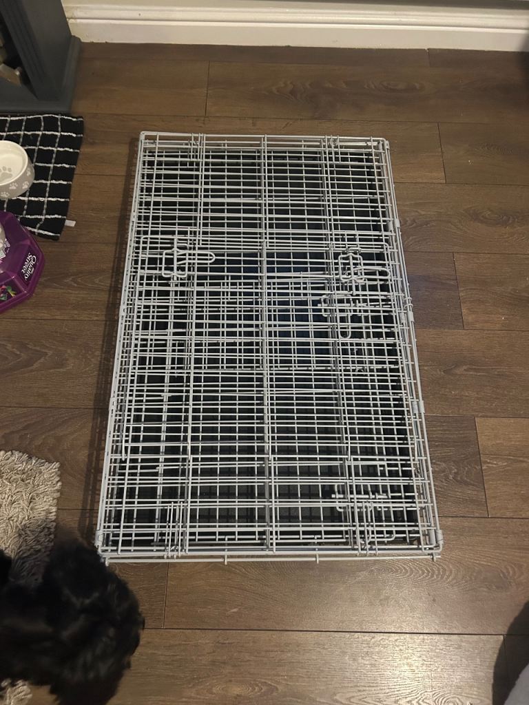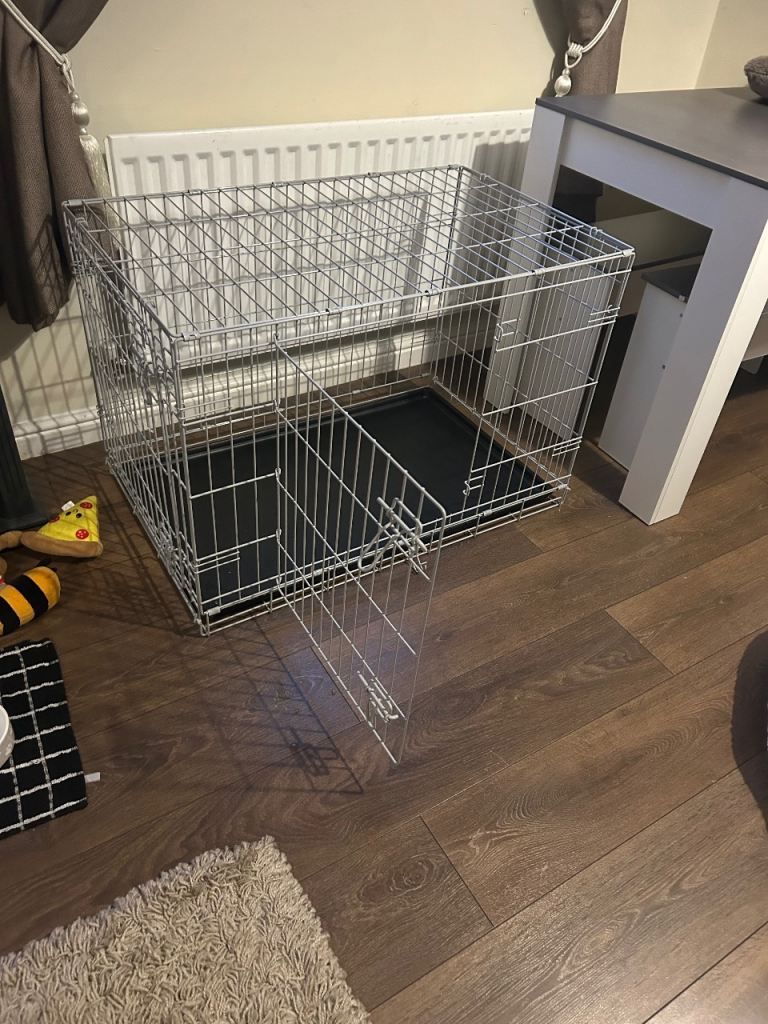 Medium sized dog crate, grey. Excellent condition as hardly used. Suited my puppy and she’s a 6 month old Cockapoo and still had loads of room.
