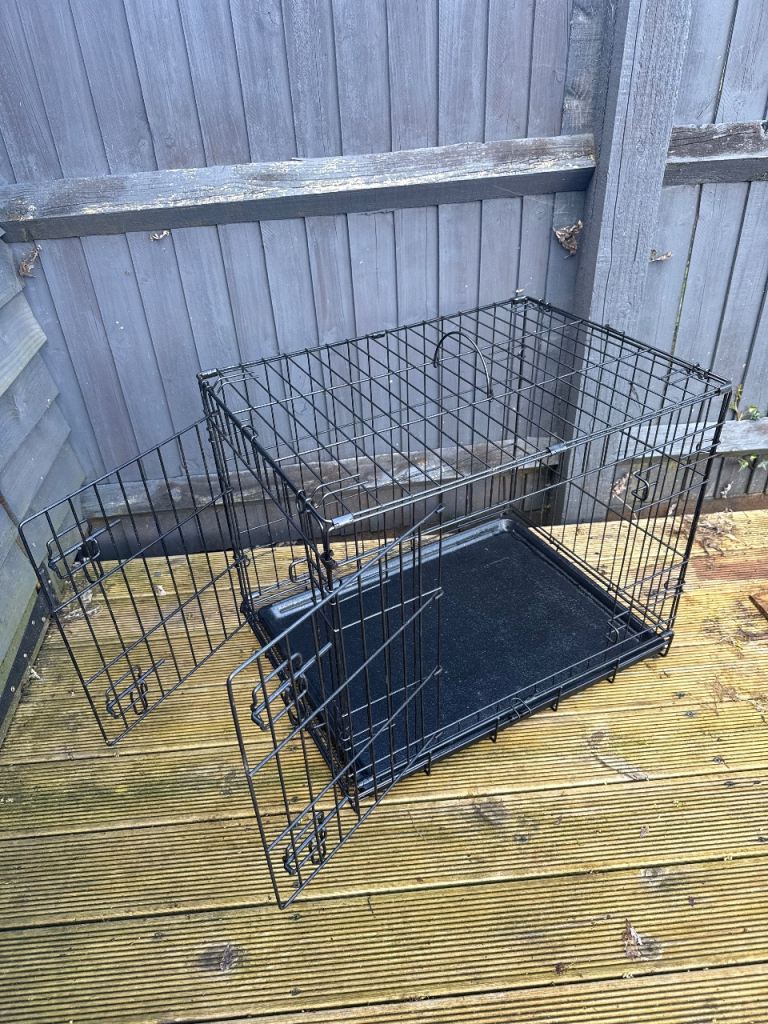 Good condition medium dog crate that collapses down for easy storage.