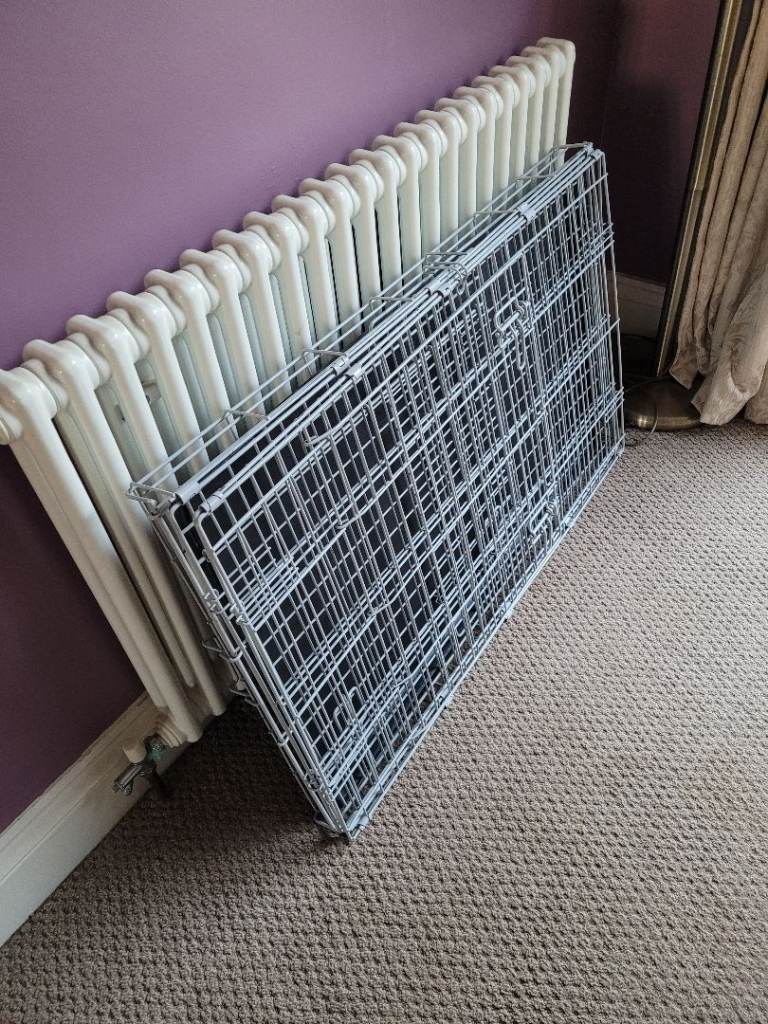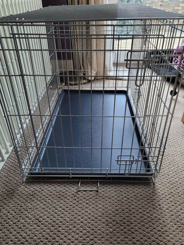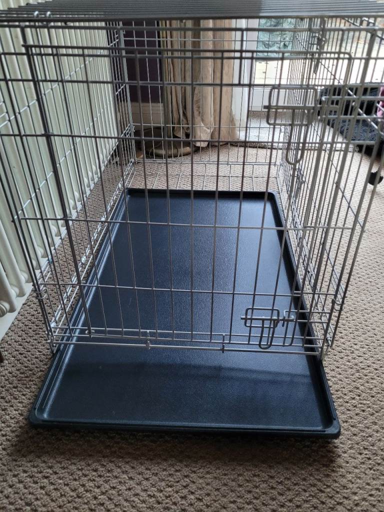Metal dog crate with removable plastic tray. Our dog has now out grown it.