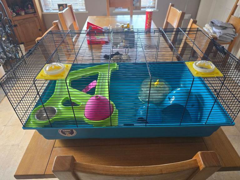 In excellent condition, this hamster cage dismantles very easily, and comes with a box of grass should you want it, as well as various hamster accessories like a spinning disc, tunnels, and balls. Price includes everything.