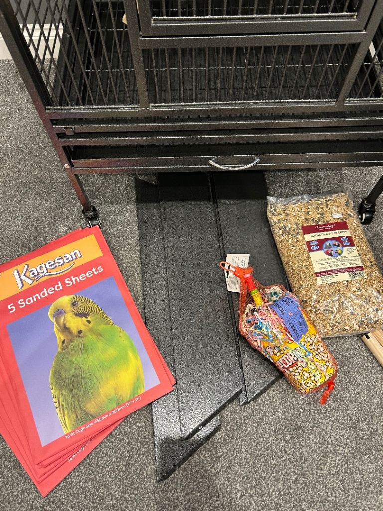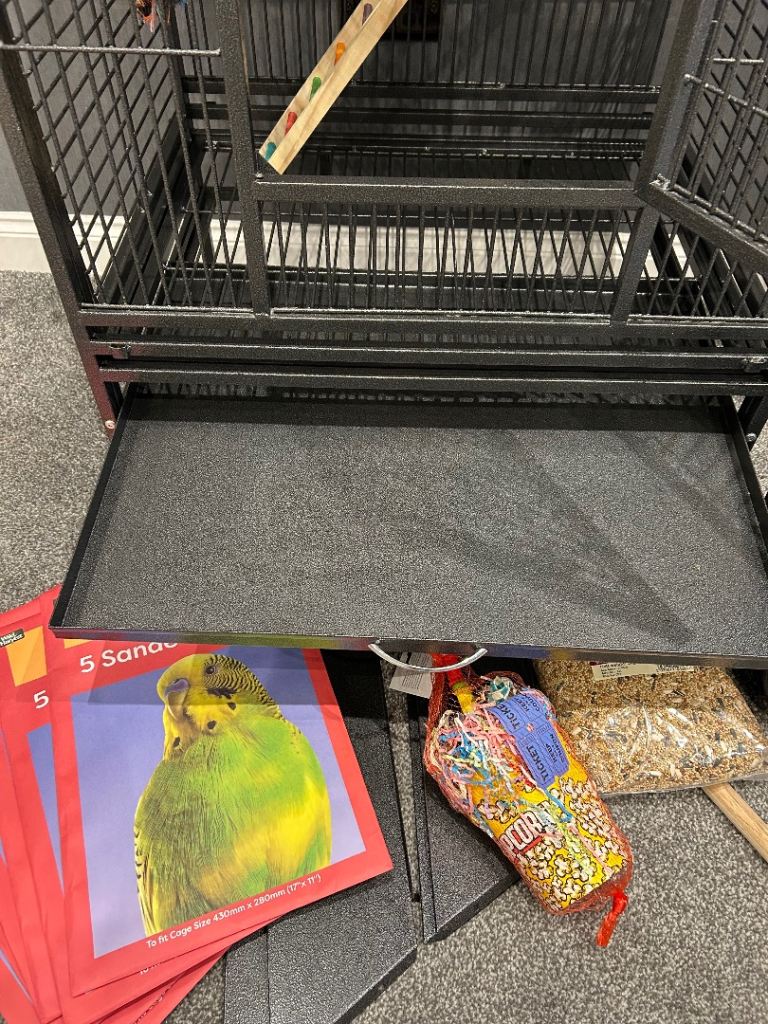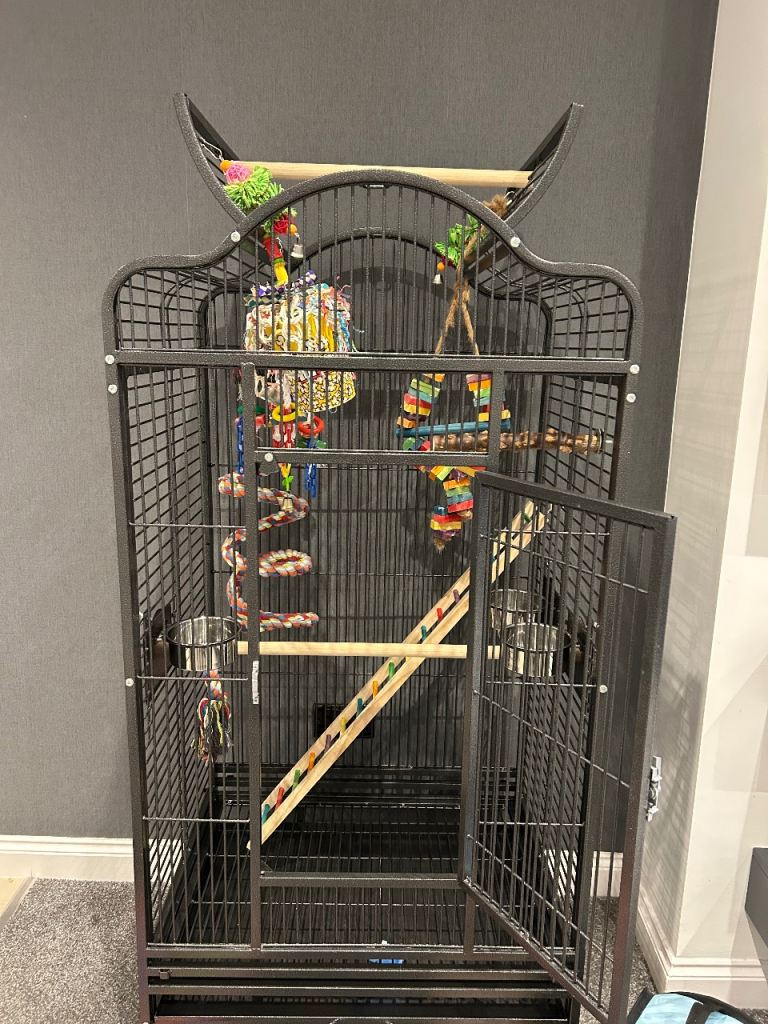 Parrot cage as new ,comes with toys ,ladder ,5 packs of sandpaper ,big bag of seed ,bird carry bag ,has everything you need,size and description in photos ,£200 collection barrow upon soar Loughborough