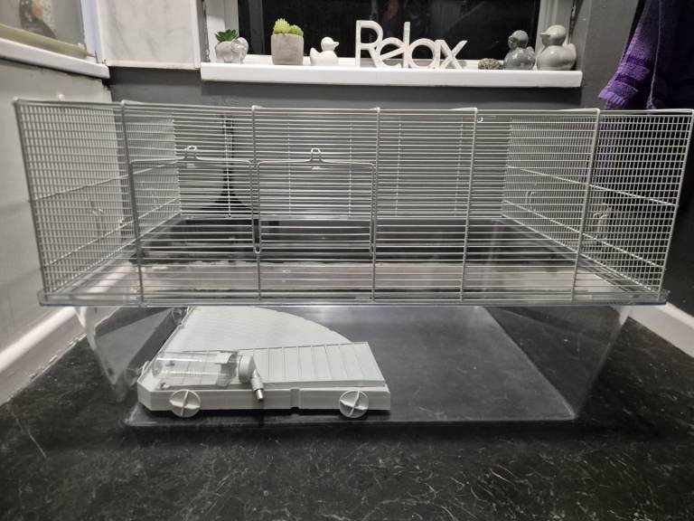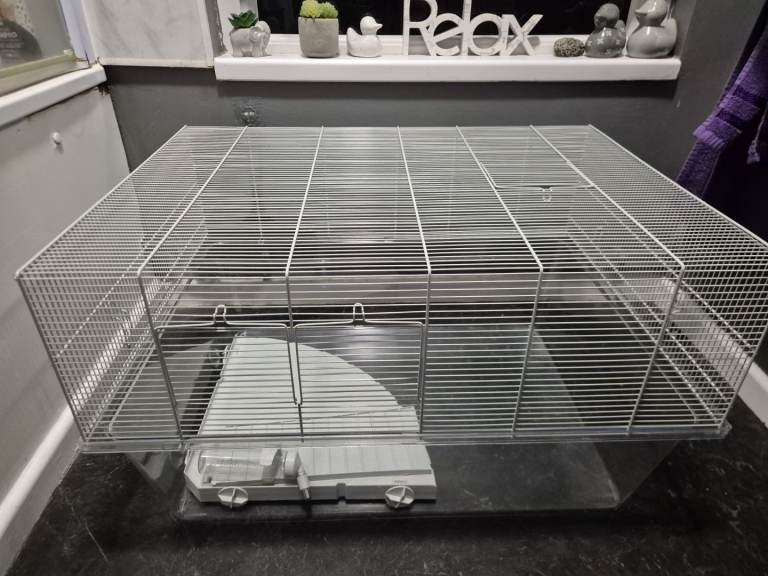 Large cage new condition only used for couple weeks if that, deep base so no mess no chew marks nothing