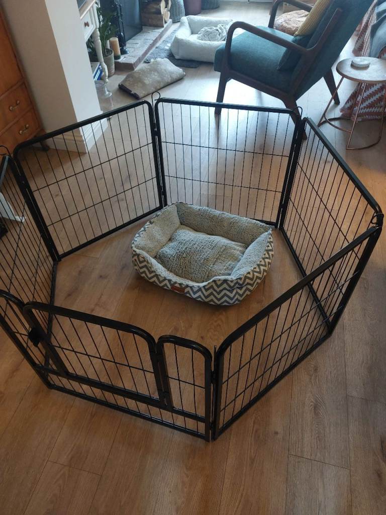 6 panel pen. Can be opened out used as a room divider in some spaces.