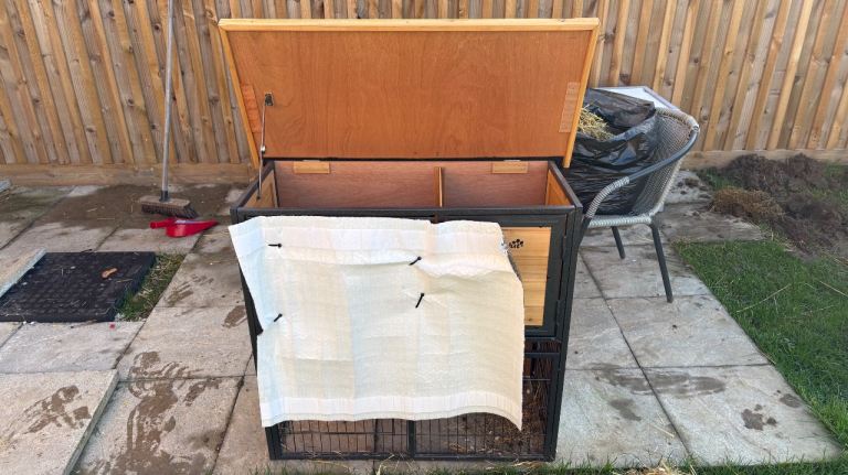 I have insulation tie wrapped to the cage which can easily be cut off but it is good for the cold.