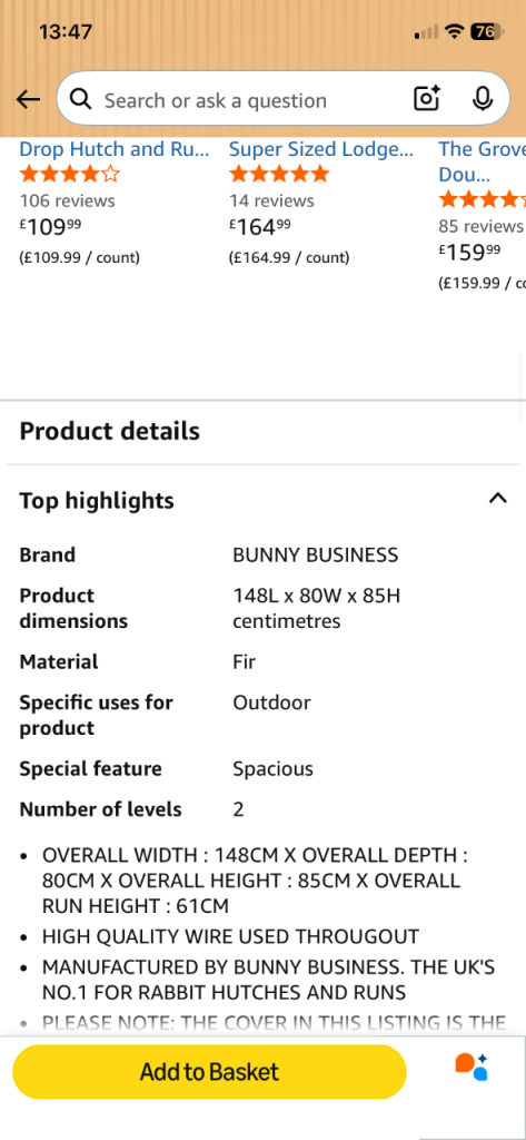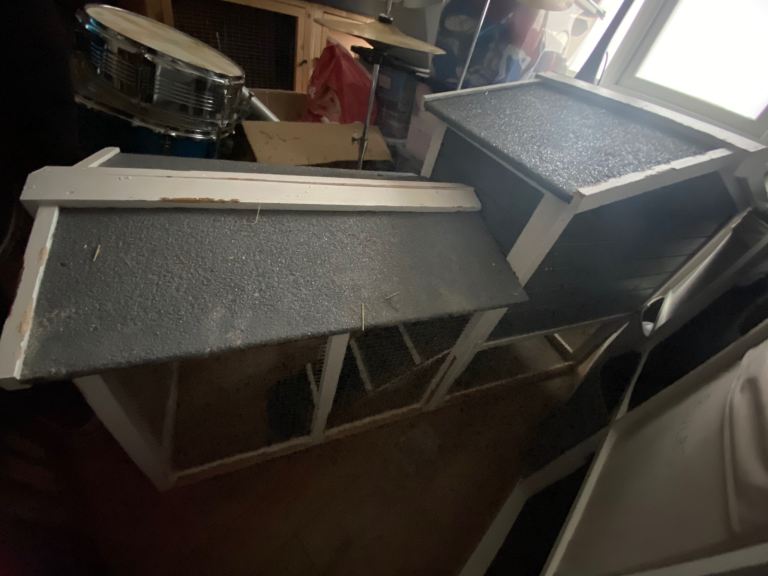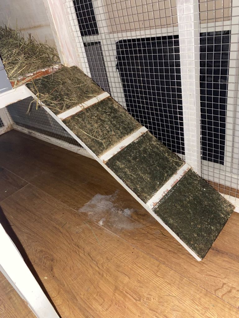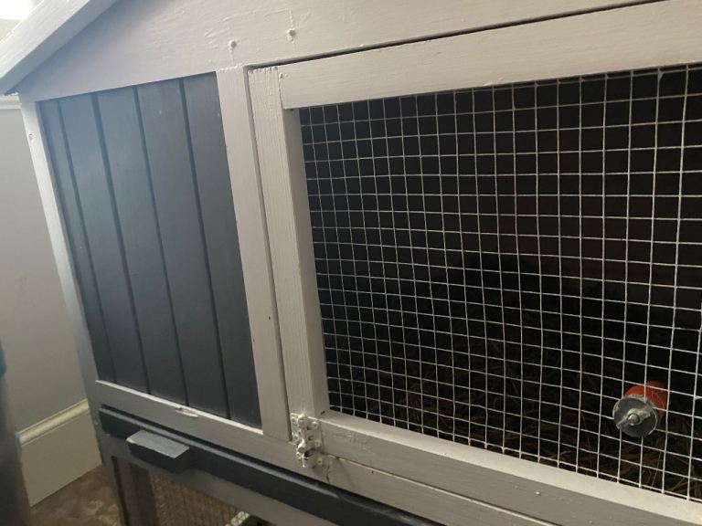 Rabbit or Guinea pig hutch. White and grey and has been kept indoors for our rabbit. No longer required as he is now a house rabbit. Hutch has been nibbled in places but is still in a usable condition. We have a hutch waterproof cover too which has never been used or even opened. Would need a van for collection due to size. Bought off Amazon. Sizes are in one of pictures.