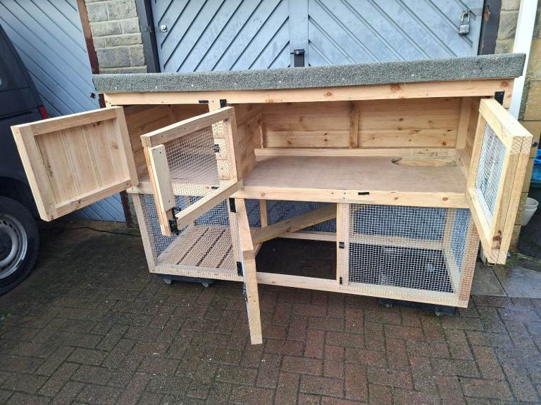 Bespoke newly built rabbit hutch ideally suitable for indoor use as untreated wood however can be used outside if wood is treated.