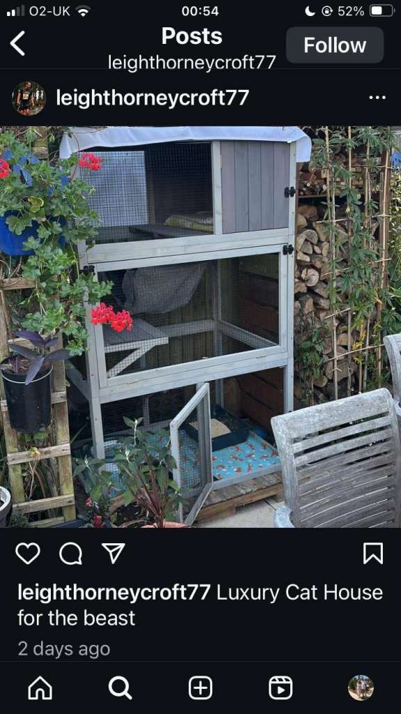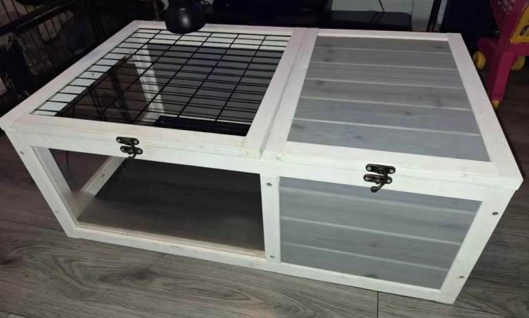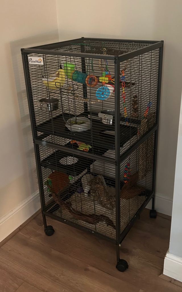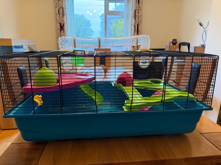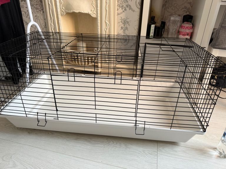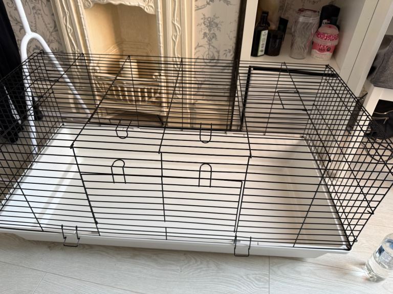 Brand new rabbit cage,only used it for 2 days as had to rehome my rabbit,for size reference I can fit in it I’m 5ft 5 and quite broad.