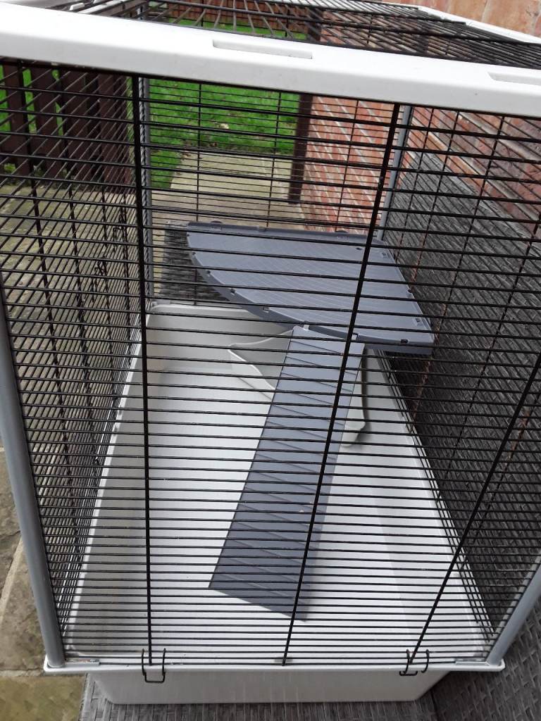 Large Ferplast rat cage in good used condition. See photos. Comes with shelf ramp and litter tray. Large size plenty of space to accommodate rats and hamsters. Measures length 77cm x depth 48cm x height 70cm. Cash and collection only please from Silkstone. Please see my other items