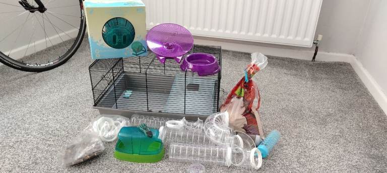 Savic plaza 100 hamster cage. I paid extra to replace the side bars with Perspex to prevent cage climbing and biting. All together would have cost over £200. Used for 1 year. Collection only.