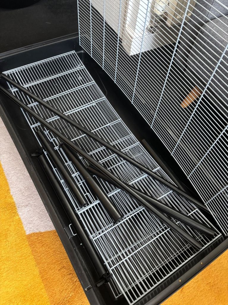 Only missing the shelf otherwise all main cage components present. Can offer new pack of bedding and come accessories with if you would like eg, wheel, carry case, sand bowl. Collection only