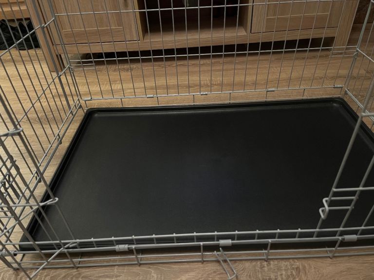 Keep your pet safe and secure with this resilient metal dog cage. Suitable for indoor use to keep your pets secure and also convenient for travelling with your pet. Easy to set up and fold down for storage, this cage collapses in a folding suitcase style for easy transport. Removable wipe clean plastic tray. Medium size.