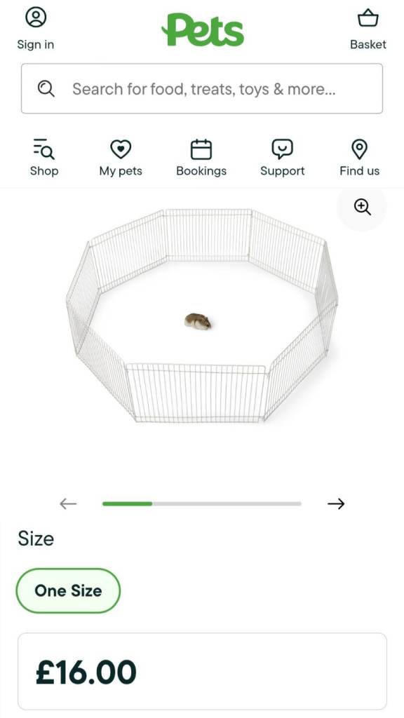 Screenshot of the item from 'Pets at Home' for reference (e.g dimensions)