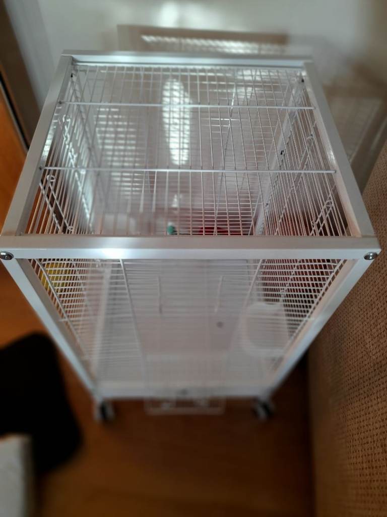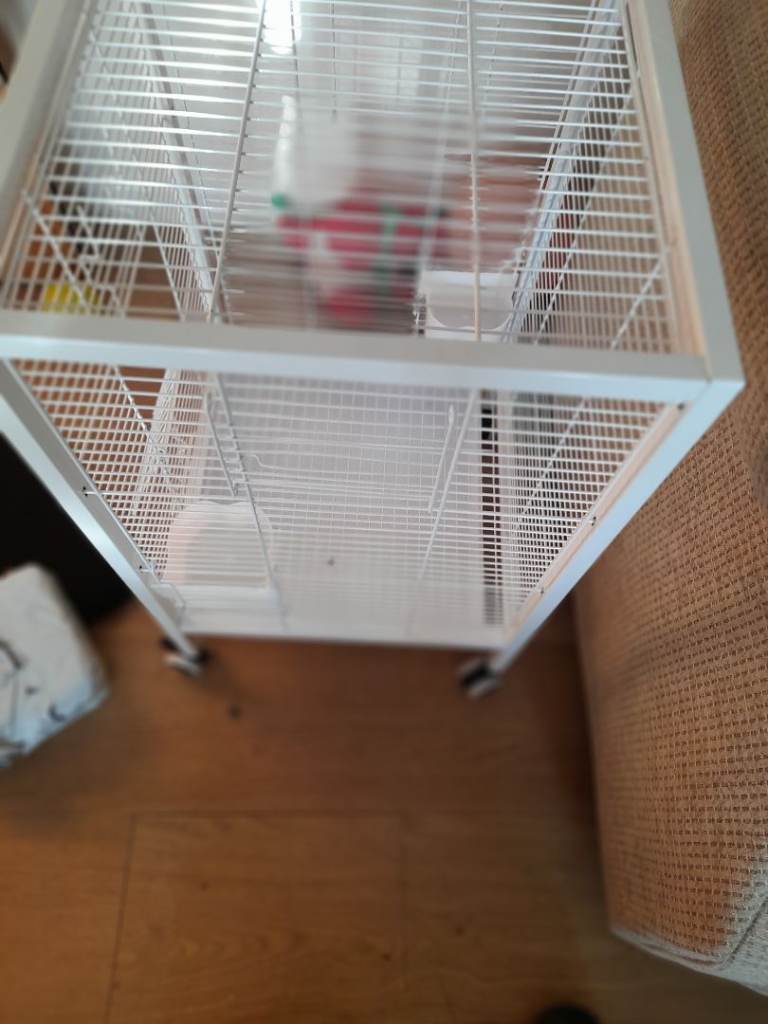Lovely brand new cage on wheels bought wrong size comes with a large used cage