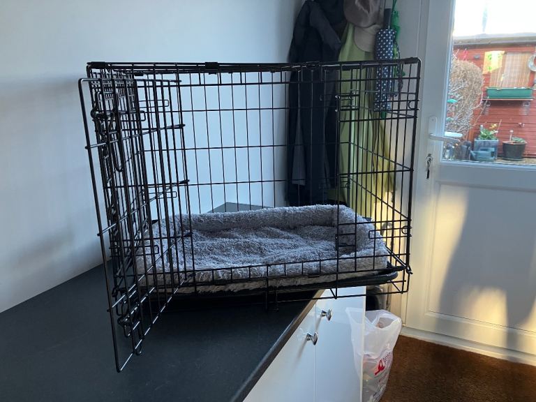 Small dog cage 49cm high 45cm wide 61cm long very good condition. Comes with a bedding mat. £15 ovno buyer to collect and cash only.