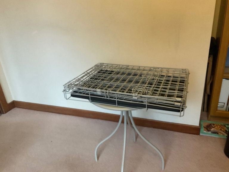 Cage suitable for small dog or puppy. 430 x 600 x 500 high. Foldable. Has 2 doors