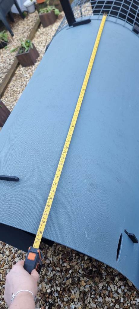 Internal floor space 980mm x 750mm or 0.74 square metres. The weight of the plastic chicken house and run combined is 58kg