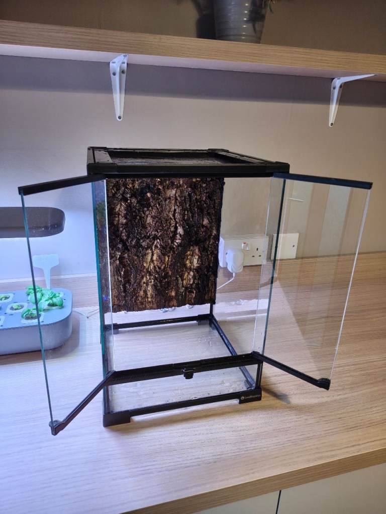 Terrarium 30x30x45, in excellent condition. Lid can hinge, be removed easily, no damage.