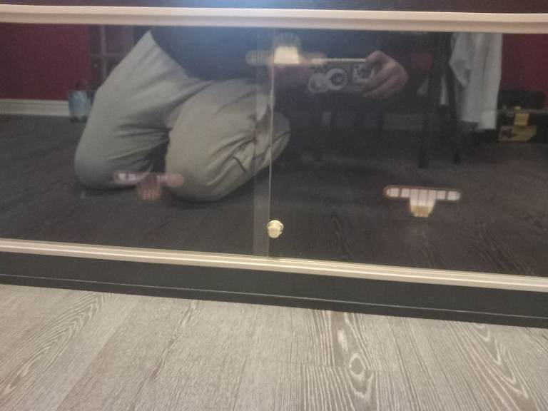 The dimensions of this vivarium is 34. inches in length, width 14 3/4 inches, 16 5/8 inches depth. This has already been used and has screw marks on the right side where a lamp was installed. I bought this for £150 but am selling a a lower price because it has been used. Does not come with lamp and other accessories. I accept only cash