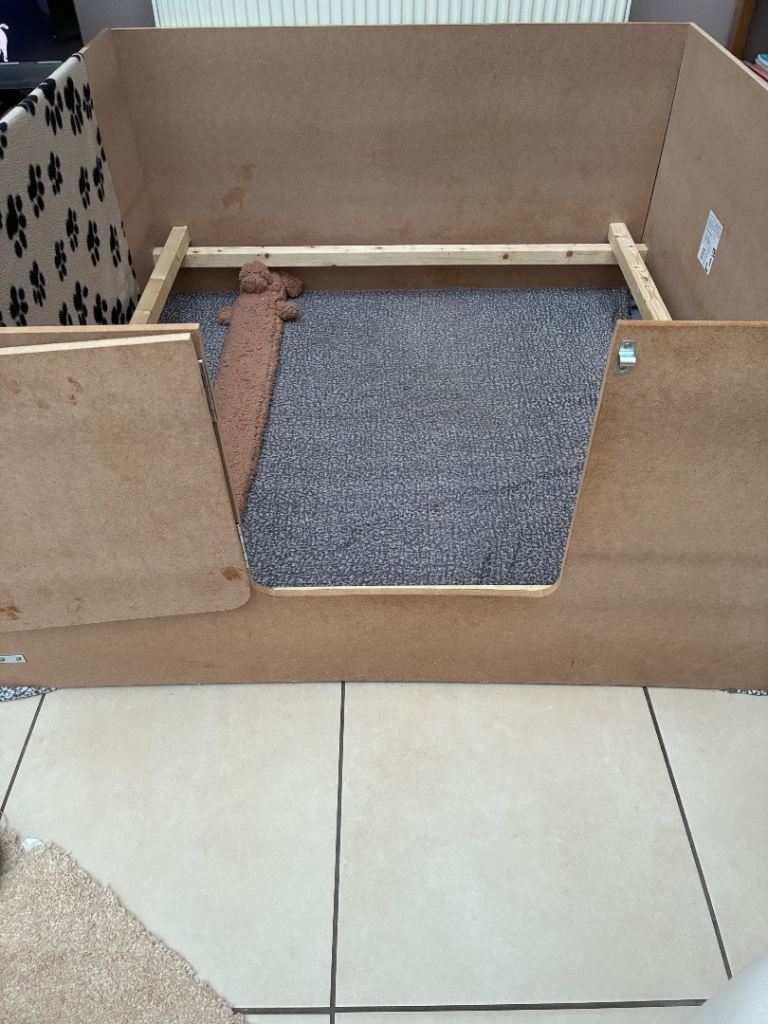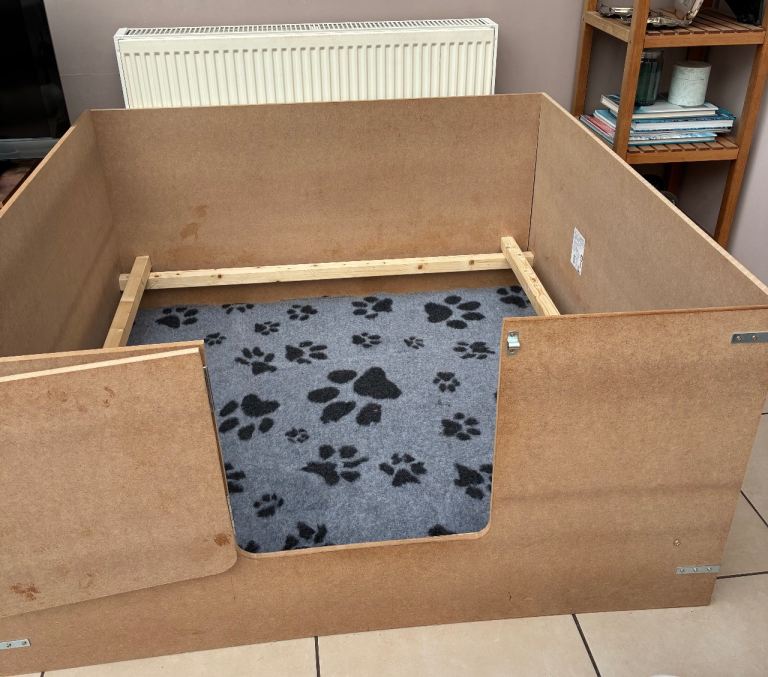 Large whelping box used for one litter only. Lockable door. ‘Pig rails’ to protect puppies. Dogs in photo NOT FOR SALE!! For scale purposes only!!