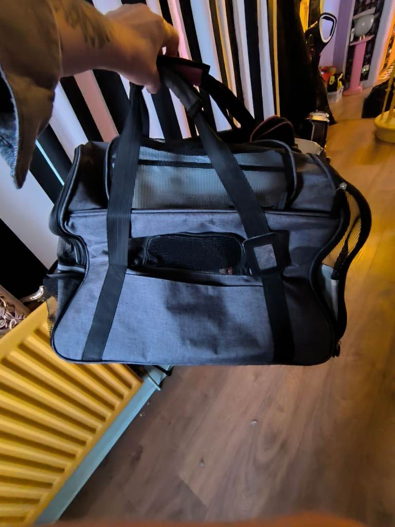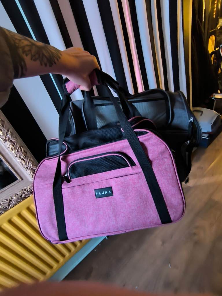 I got two pet carriers to give away, the pink one is a little smaller and would suit little animals or a very small cat, grey one is larger and fit my male cat comfortably. I'd rather give away the two at the same time please x