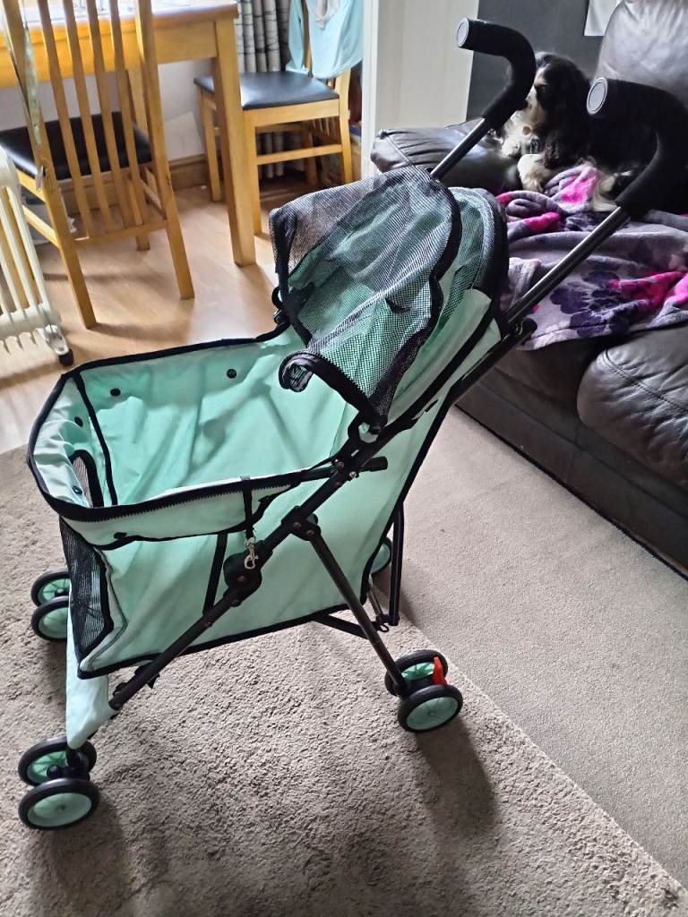 Dog carrier medium has side pockets padded shoulder straps with saftey back strap dog saftey clip never been used