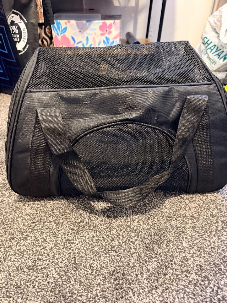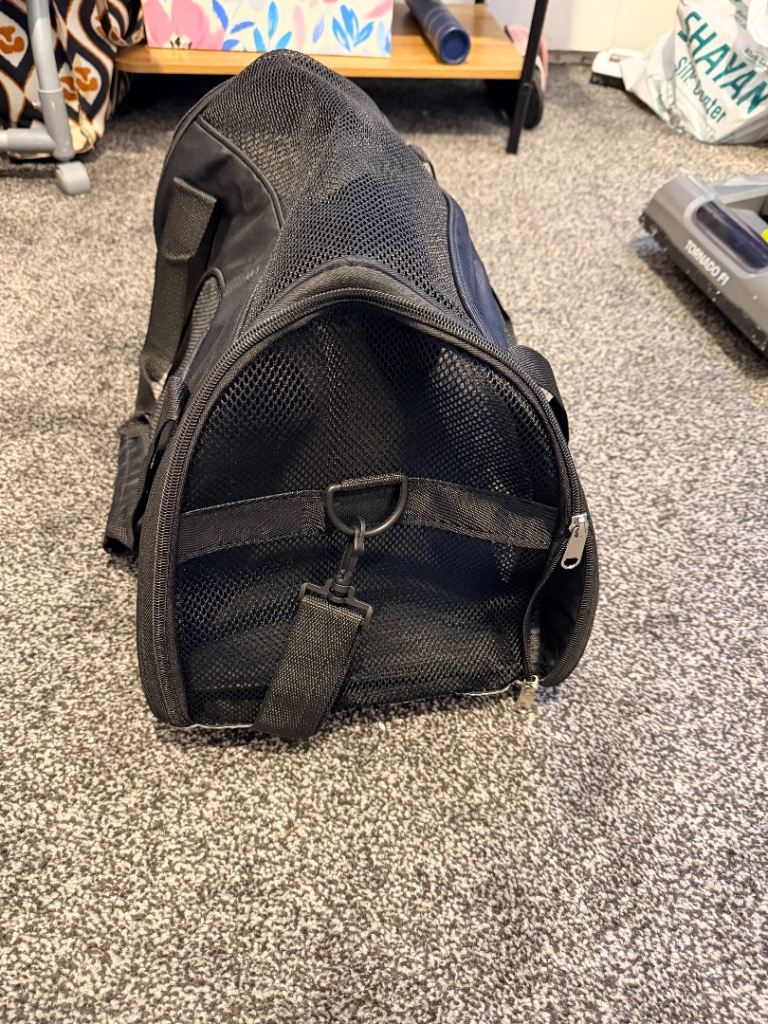 Black cat carrier bag in very good condition. Used only a few times for vet visits. Clean, sturdy, and comfortable for your pet. Easy to carry and secure zip fastening.