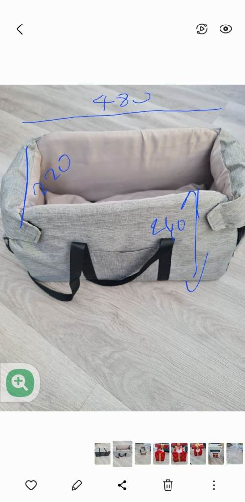 Small carry transporter bag fits centre console on car suit cat or small dog, Brand new bought for dog but he wont stay put in there. 480mmL x 220mmW x 240mmH.