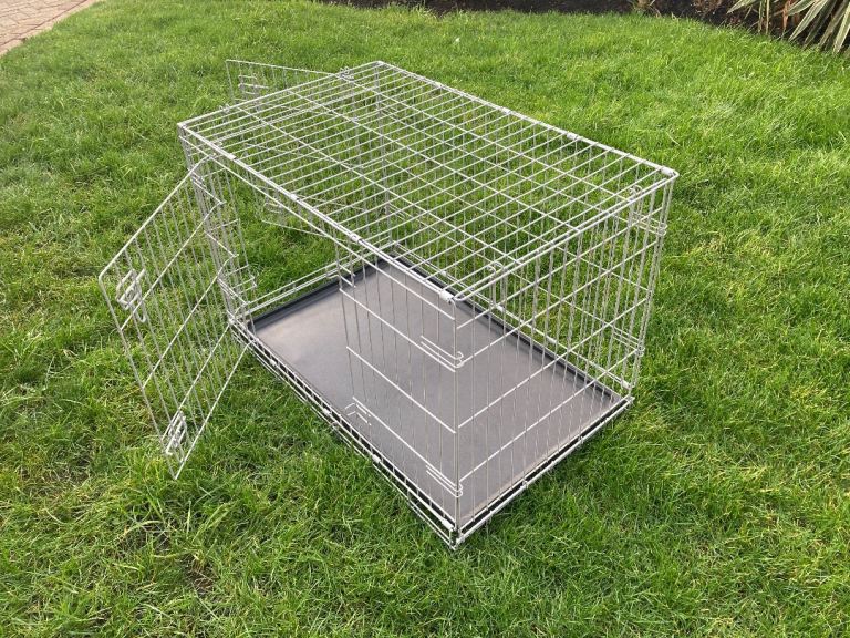 Pets at Home Double Door Easy Assemble Secure Folding Dog Crate for Dogs Grey, only used a couple of times. Removable Plastic tray base for easy cleaning.