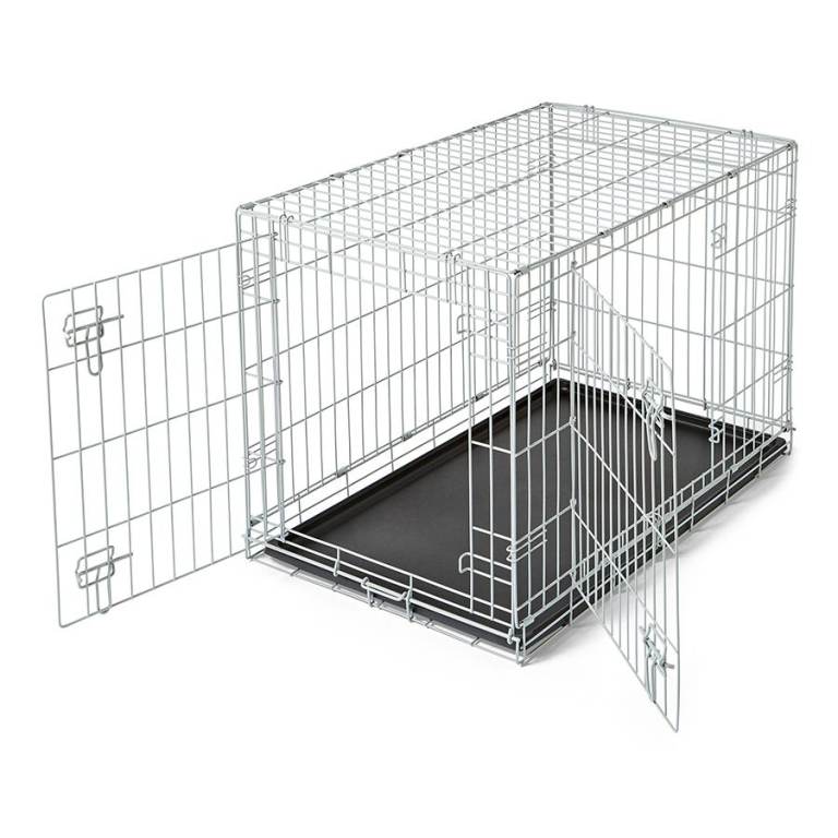 Pets at Home Double Door Easy Assemble Secure Folding Dog Crate for Dogs Grey, Medium
