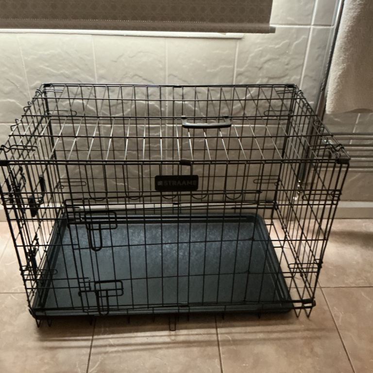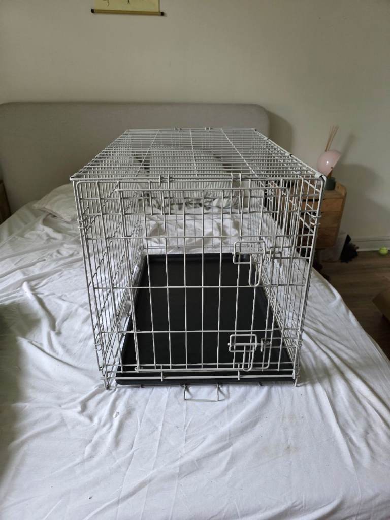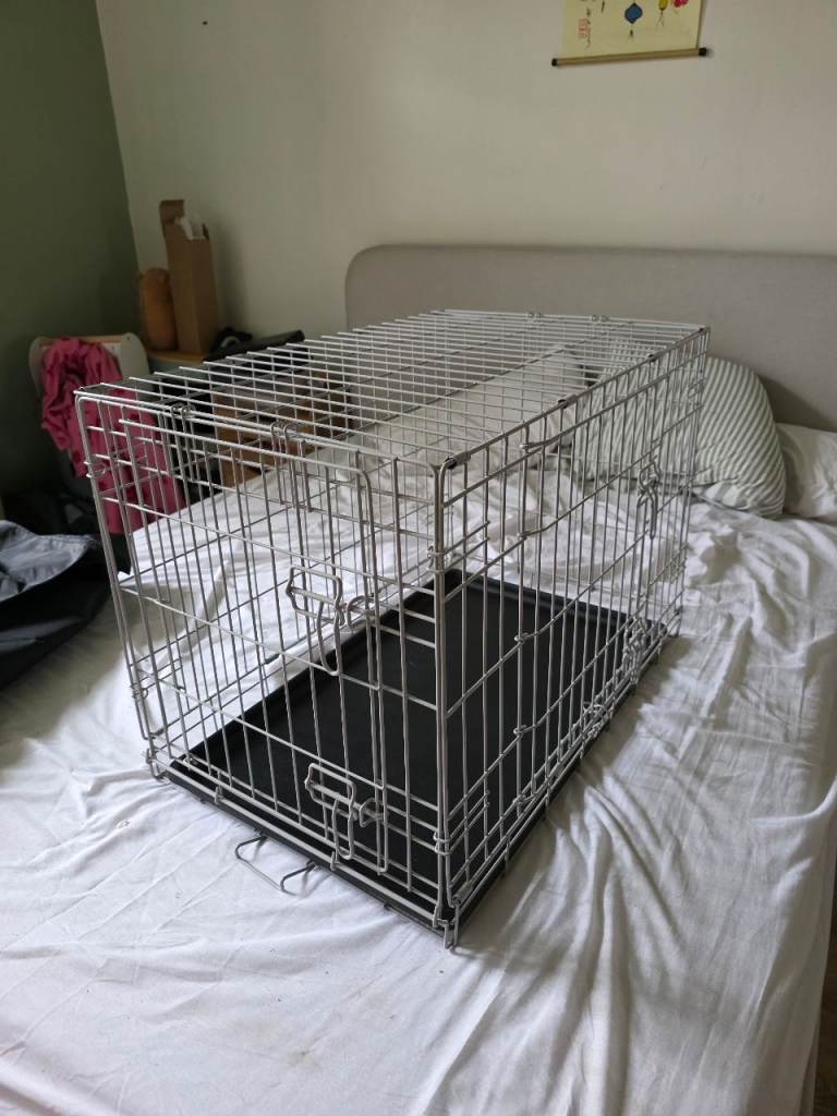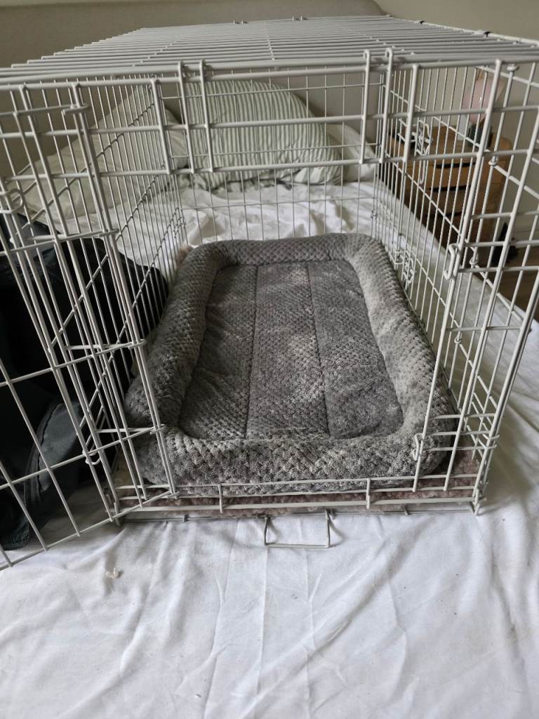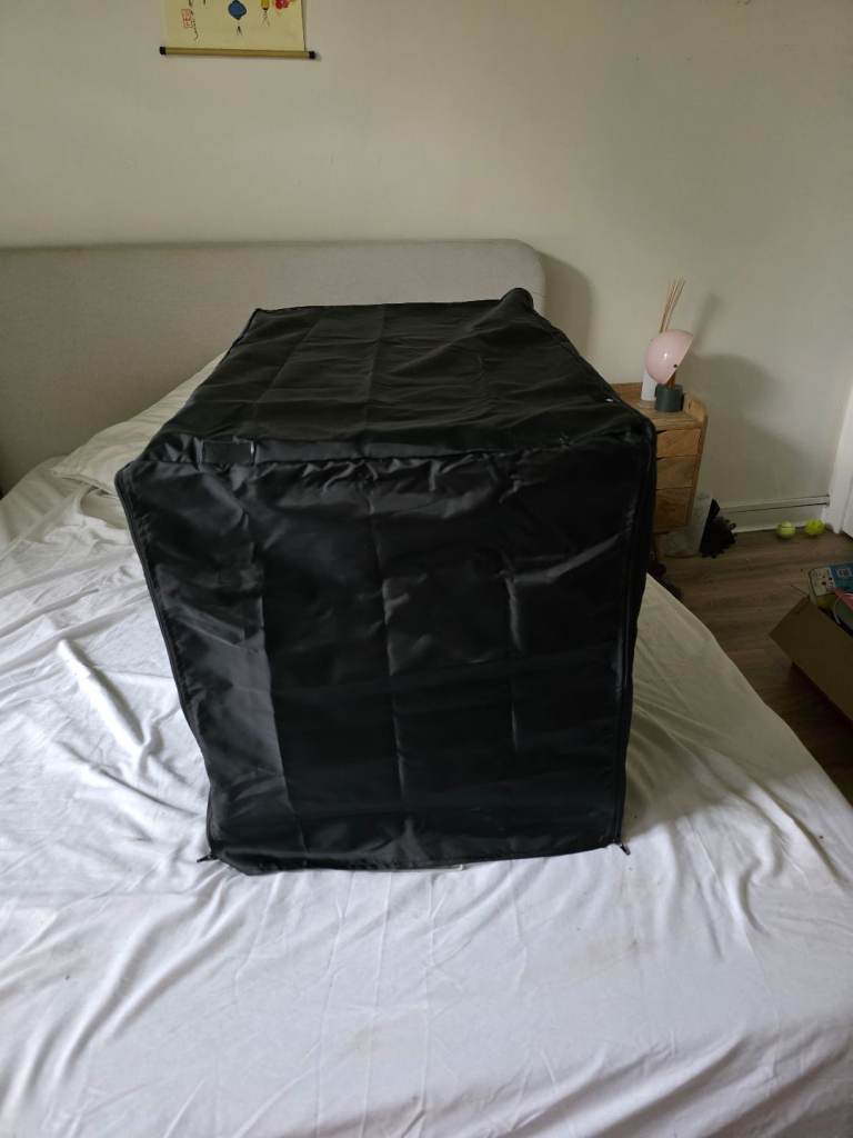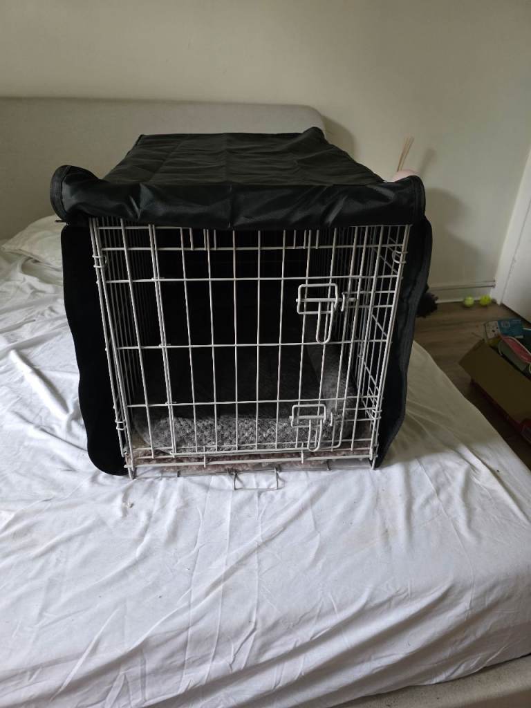Posting for 5+ yearsDog crate with bed and cover