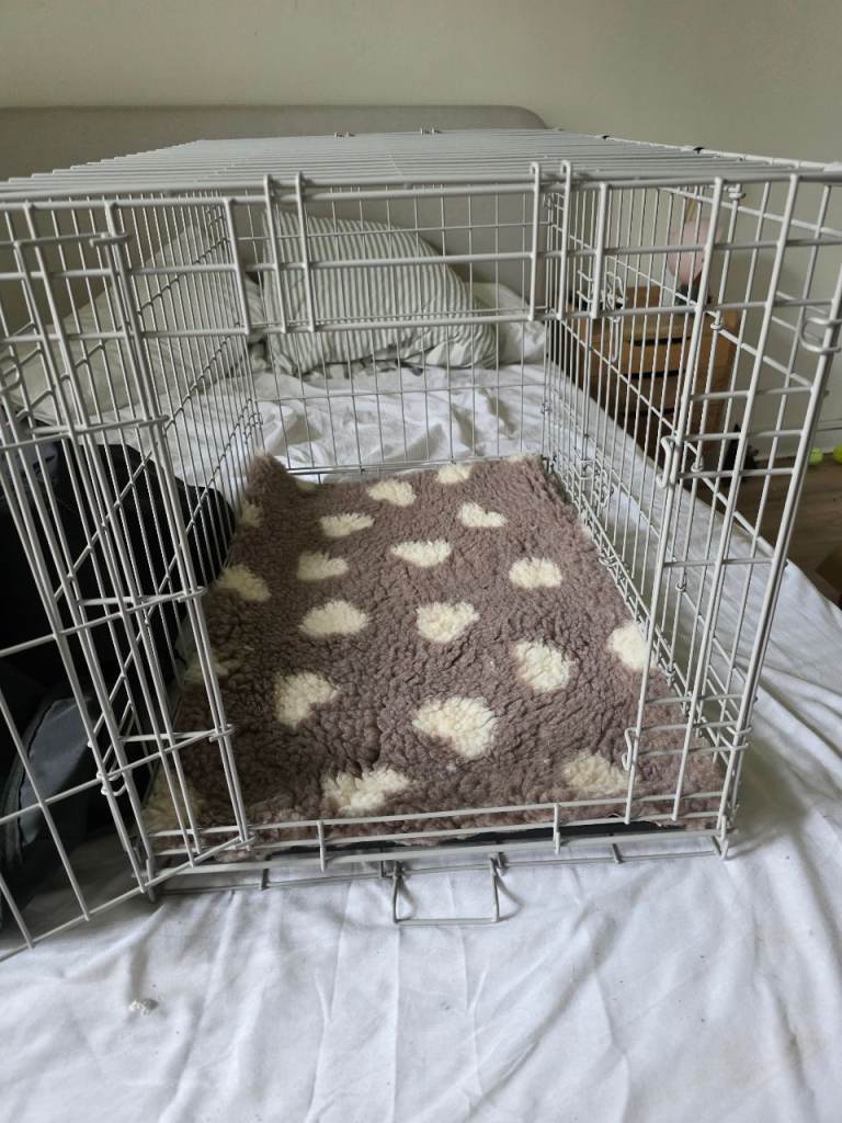 Comes with everything you need to crate train your pup. Cover and brand new crate mat. Also included vet bed so you can switch them to wash.