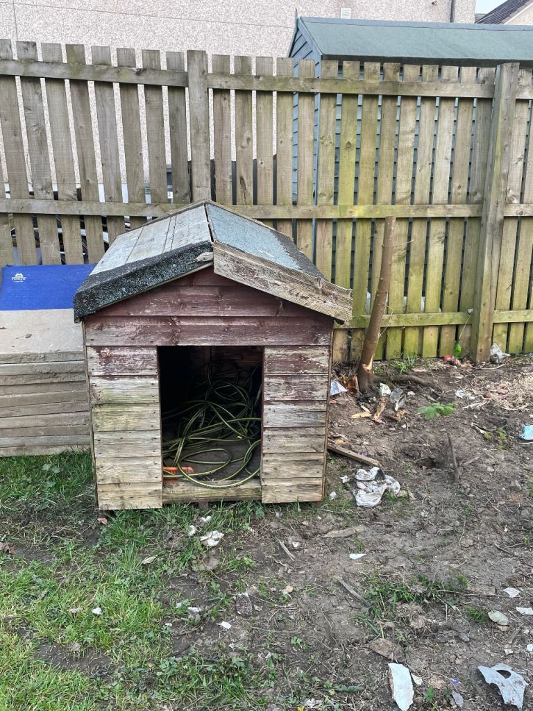 Very good sized dog hut looks rough but built is sturdy juts need some tlc and someone to pick it up in van would need 2 people but I would help lift it with them too