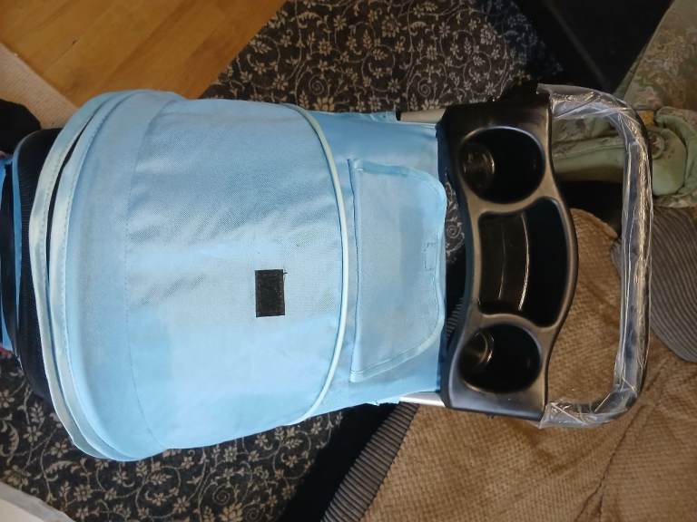 Light blue dog stroller in great condition