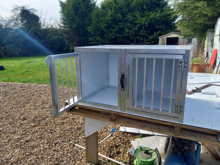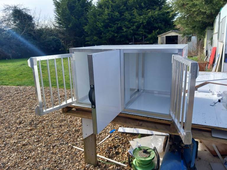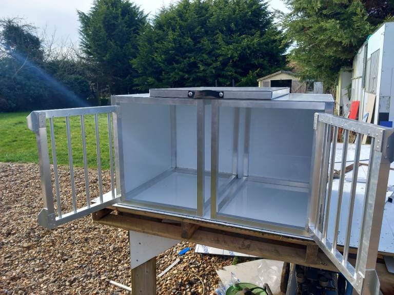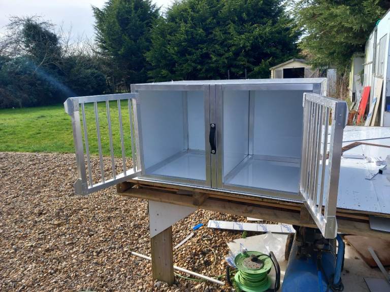 Double dog transport box manufactured from hygentinc aluminium and plastic composite.