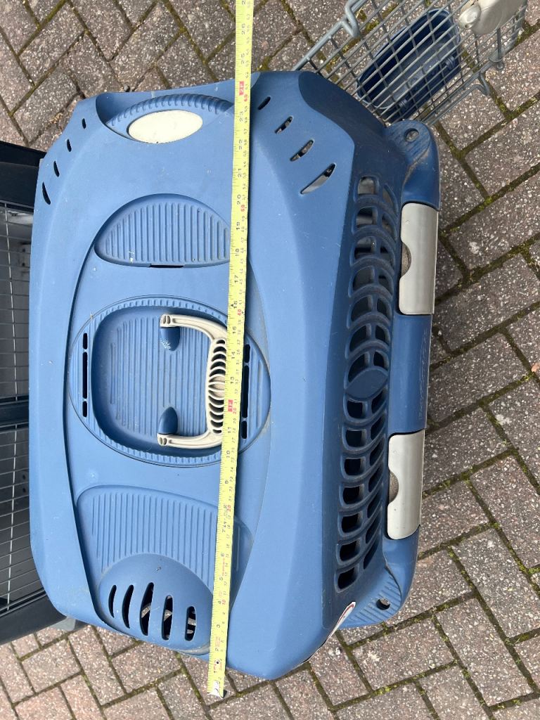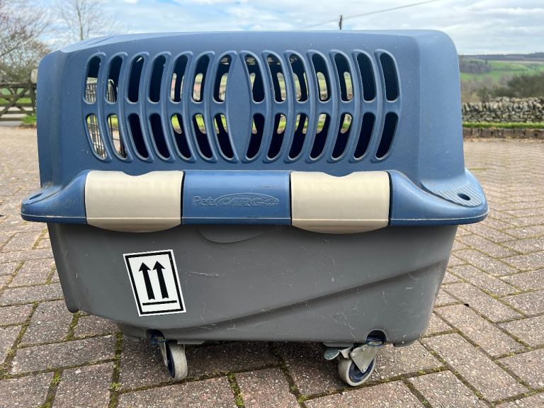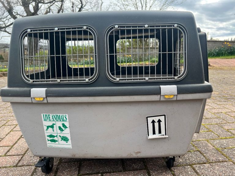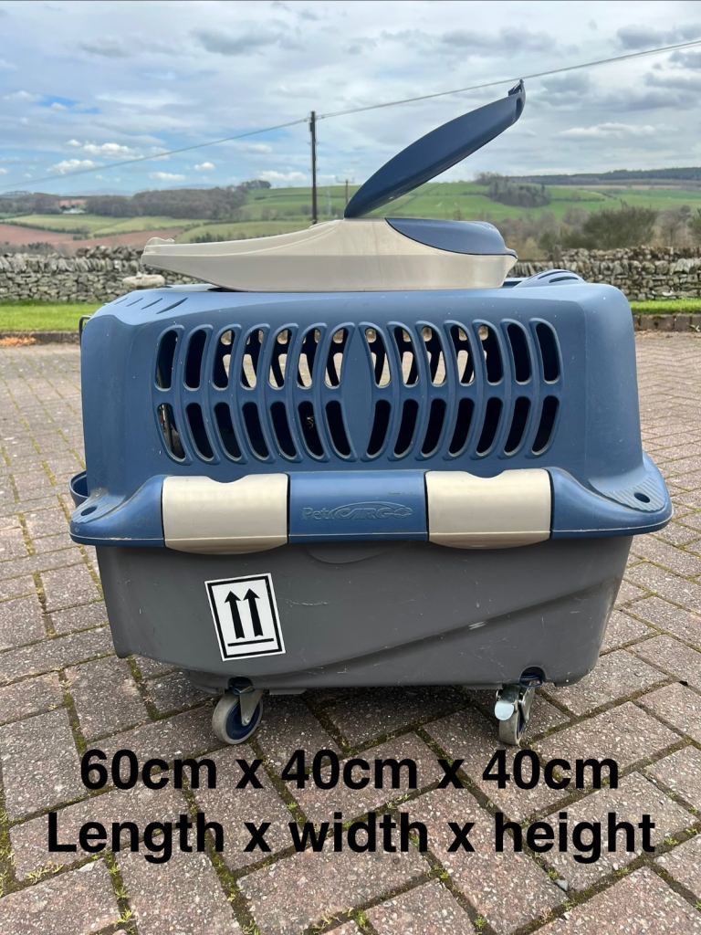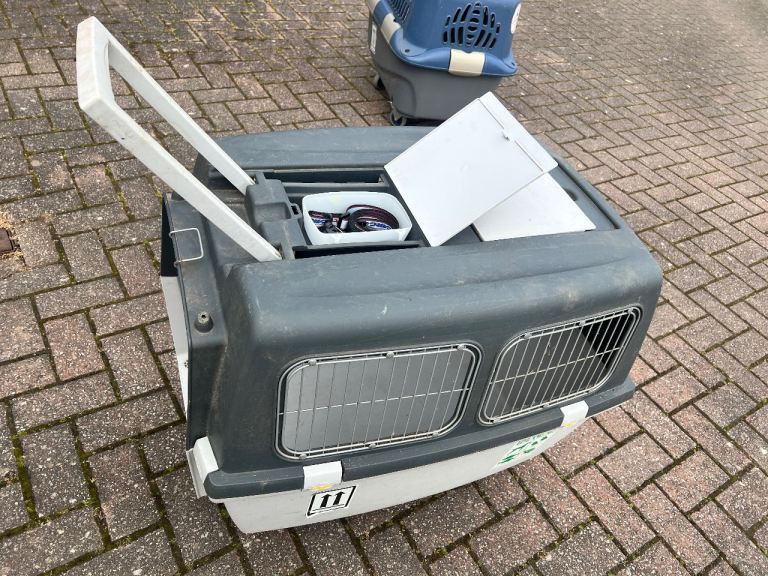 *Sold separately* two dog carriers, both airline- approved. Suitable for small and medium dogs. (Used for Border terrier and Spaniel-sized dogs)