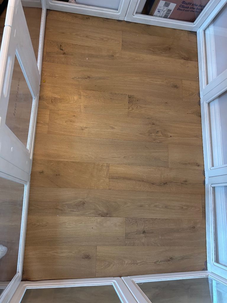 Also comes with Lino, cut to size as you see in pictures. Acts as floor protection from puppies or small pets