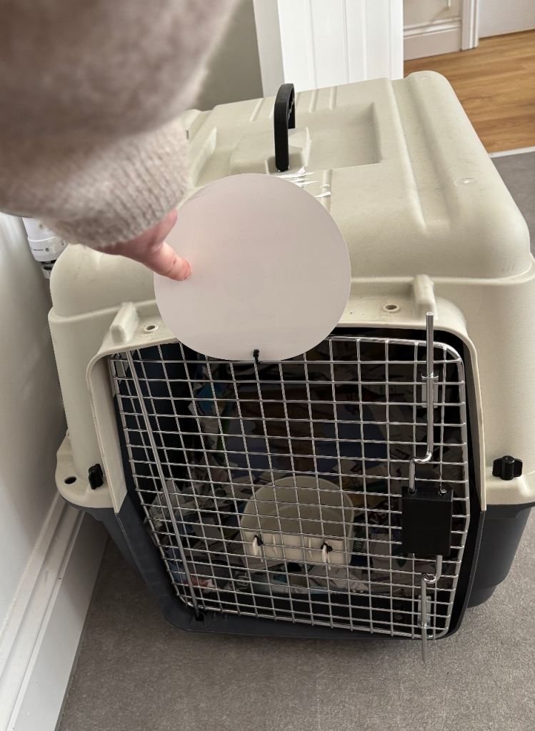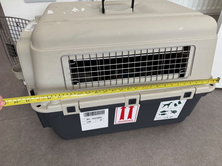 Used for cat overseas travel very large and spacious used for 24 hours only. Will attempt to remove travel stickers