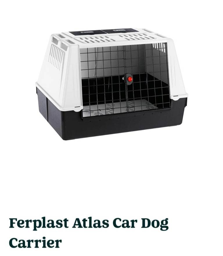 Traveling by car with your dog in complete safety has never been easier. Atlas Car is a sturdy, lightweight pet carrier, made of plastic with a plastic-coated steel door.