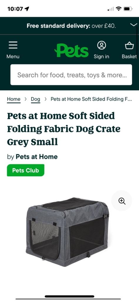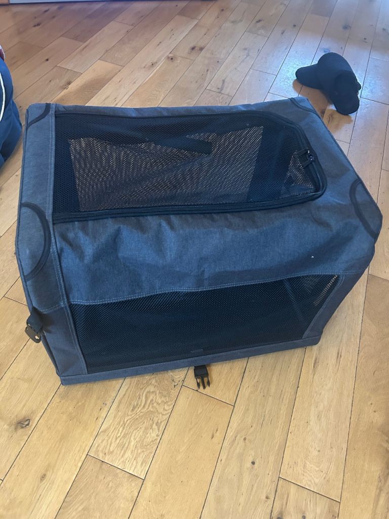 Brand new never been used pets at home grey fabric folding dog crate , bought for our frenchie but she never used it , too late to return