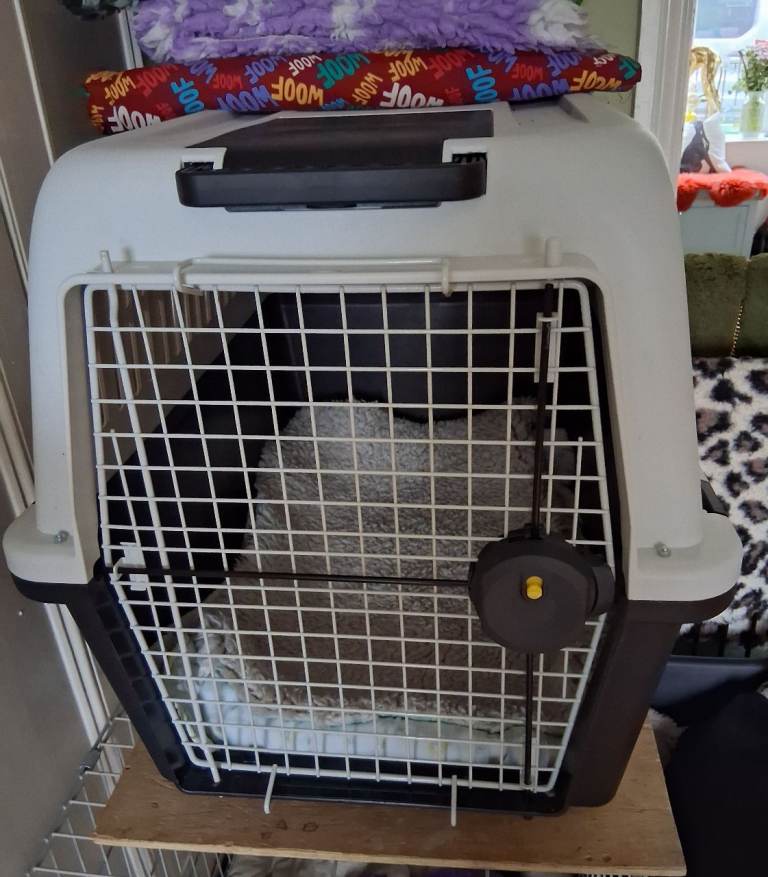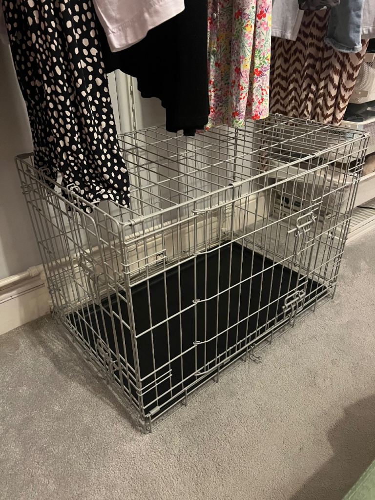 Comes with the black crate mat/ tray and I also have some left over puppy training pads I’m happy to give along with the crate 🐶