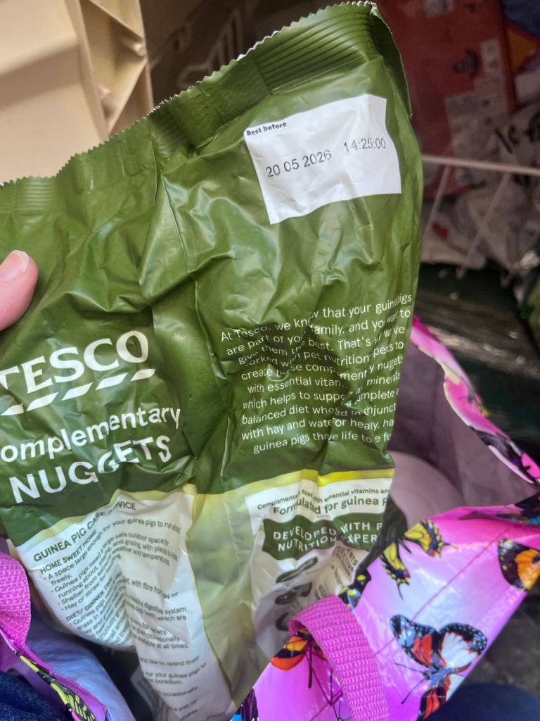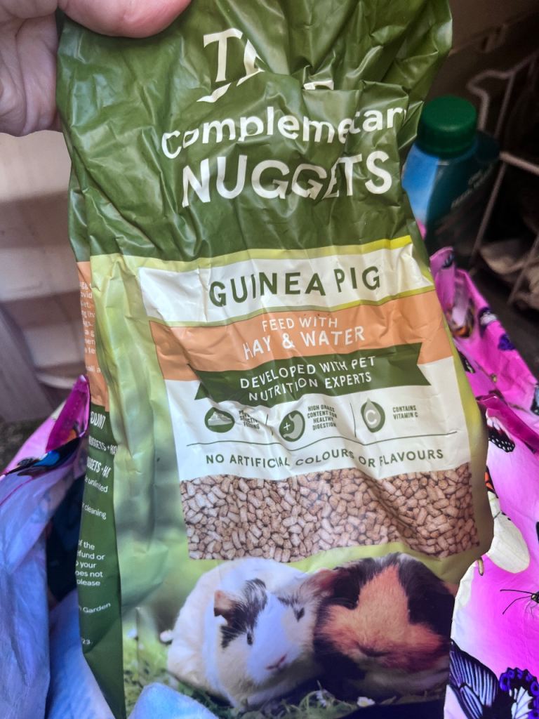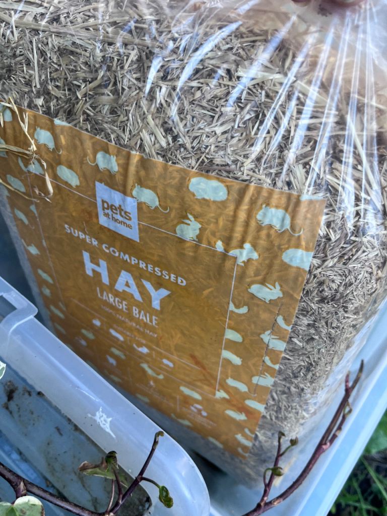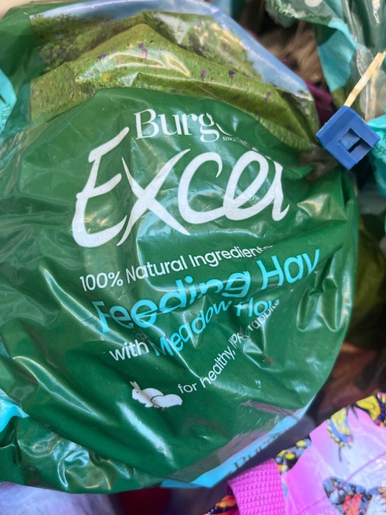Burgess feeding hay it was in a 500 g bag. There’s probably 250 g left.