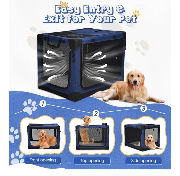 XL (90x64x64cm) Travel/Foldable/Collapsible Dog Crate. Includes carry case