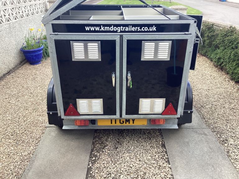 The KM 3 compartment Dog Trailer is specifically designed for Working/Show dogs this trailer comes with extra storage on top for added convenience. The brand's reputation for quality and durability ensures a reliable and safe transport solution for your dog friend. With this trailer, you can confidently take your dogs on adventures without worrying about their comfort or safety.
