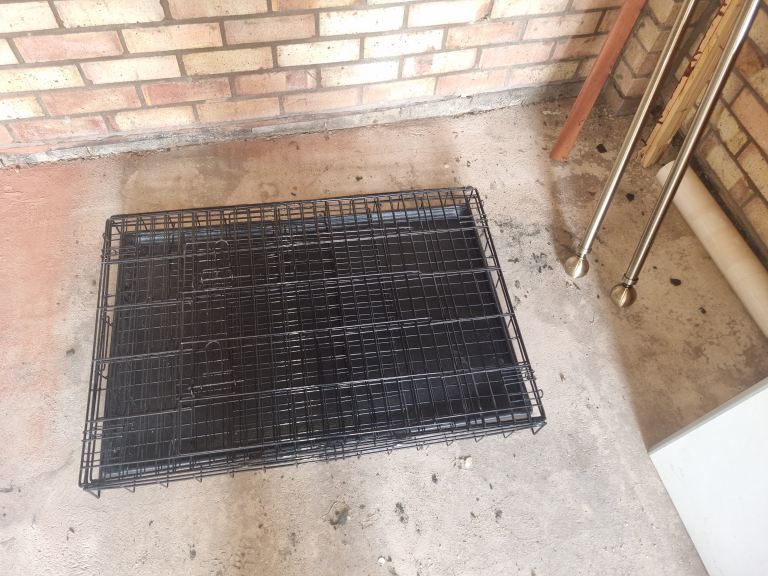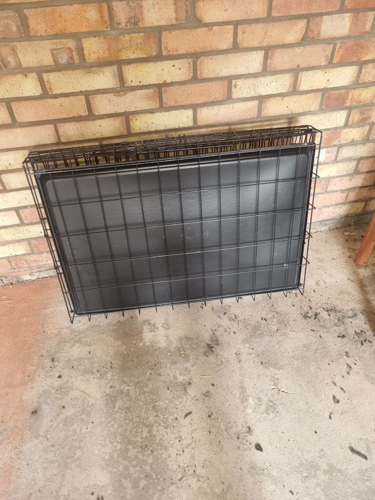 Large Dog Crate. In good working condition. Has some rust on the door latch and the handle to carry when not in use has broken off but perfectly safe in good condition otherwise.