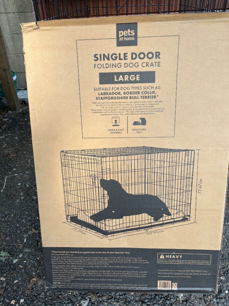 Folding dog crate for large dog. Has had very little usage , been kept at grandparents house for stay overs. £45 ovno