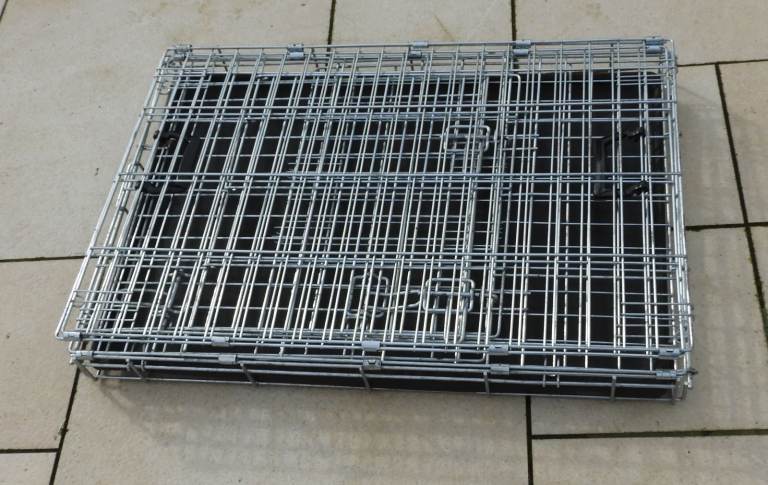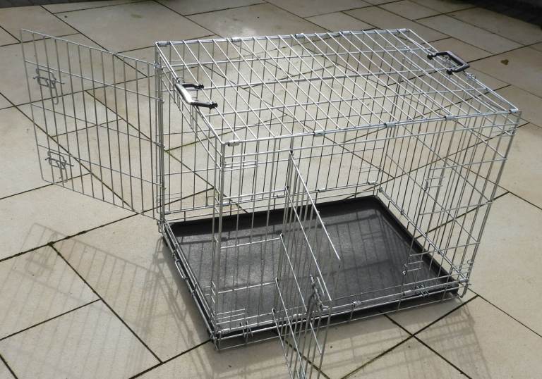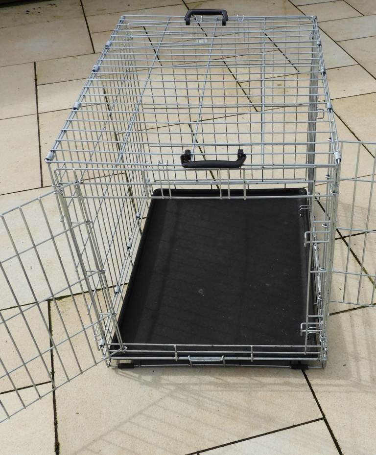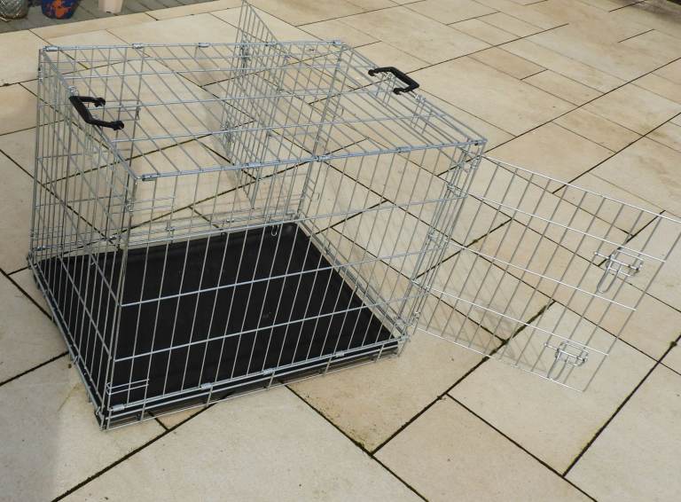 large good condition silver and grey double door dog crate large no rust 30" 76cm L