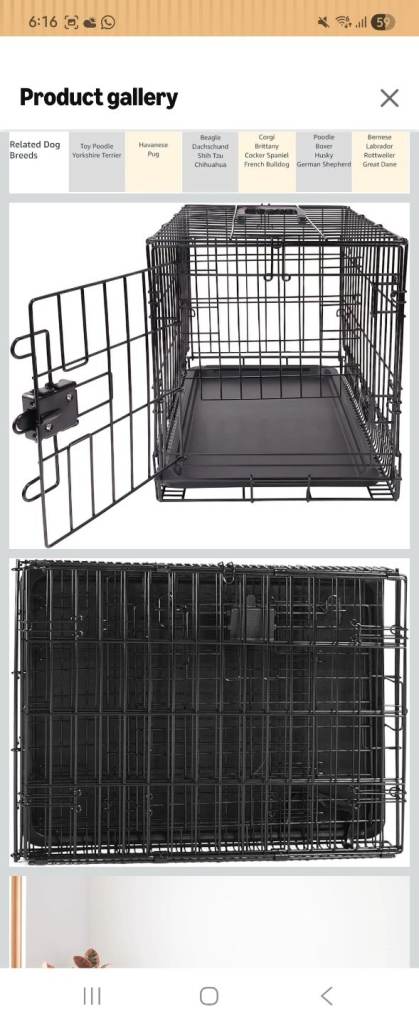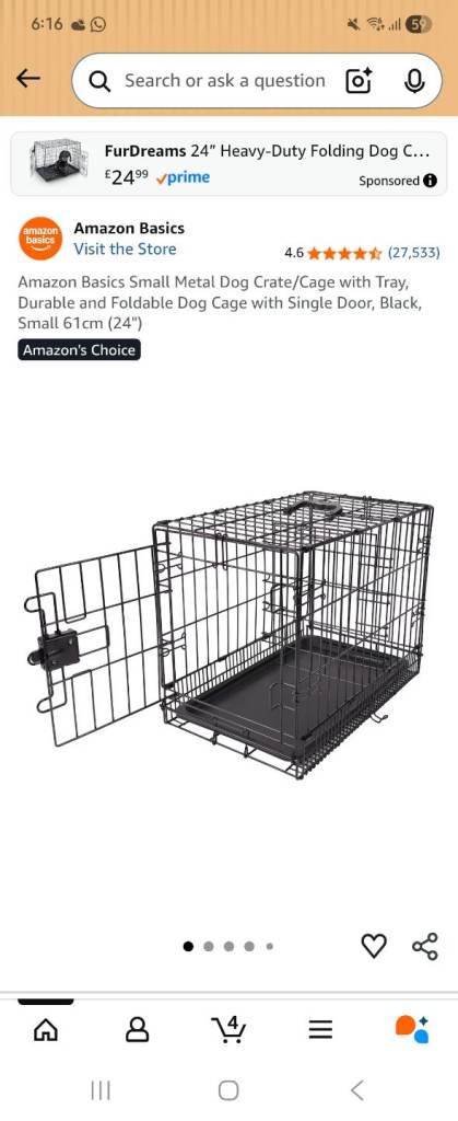 Amazon Basics Small Metal Dog Crate/Cage with Tray, Durable and Foldable Dog Cage with Single Door, Black, Small 61cm (24")
