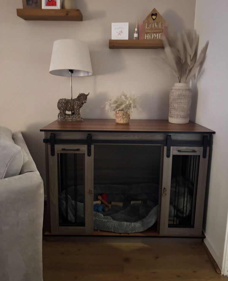 PawHut Dog Crate Furniture for Large Dog, Double Dog Cage for Small Dogs with Divider, Sliding Doors - Oak Tone