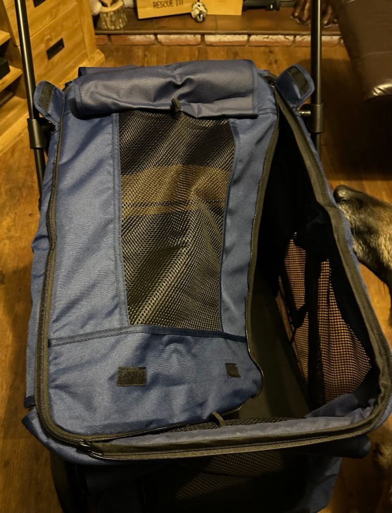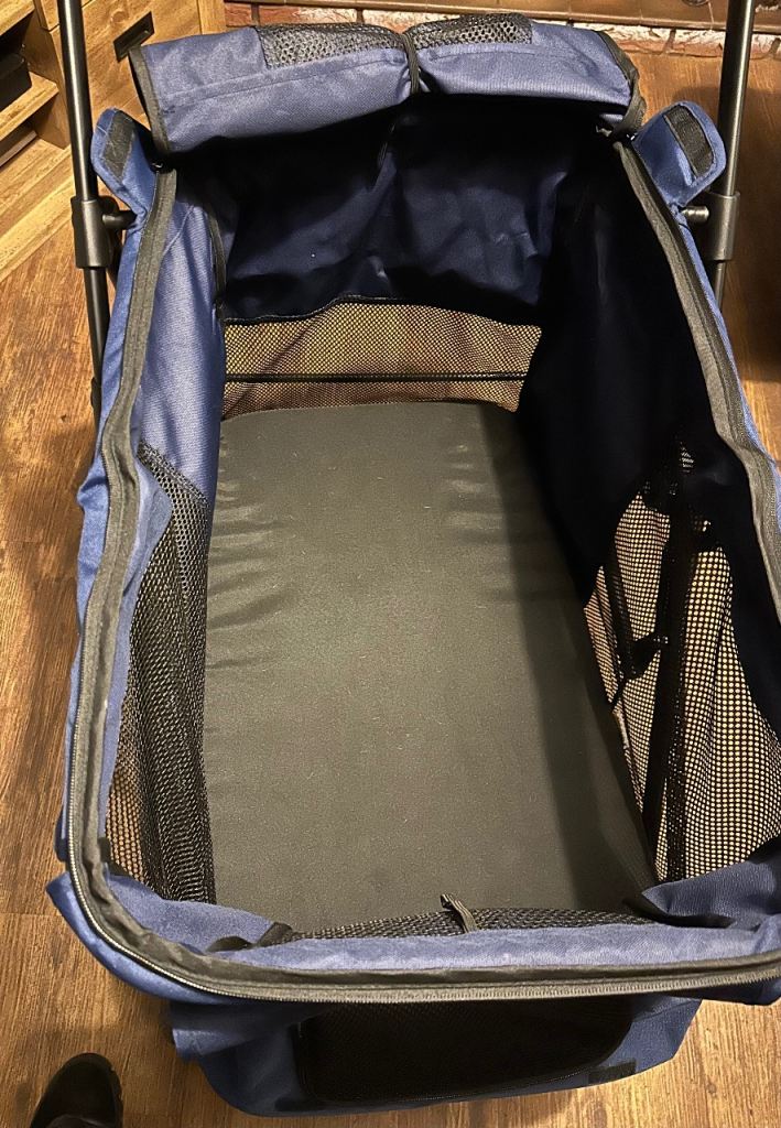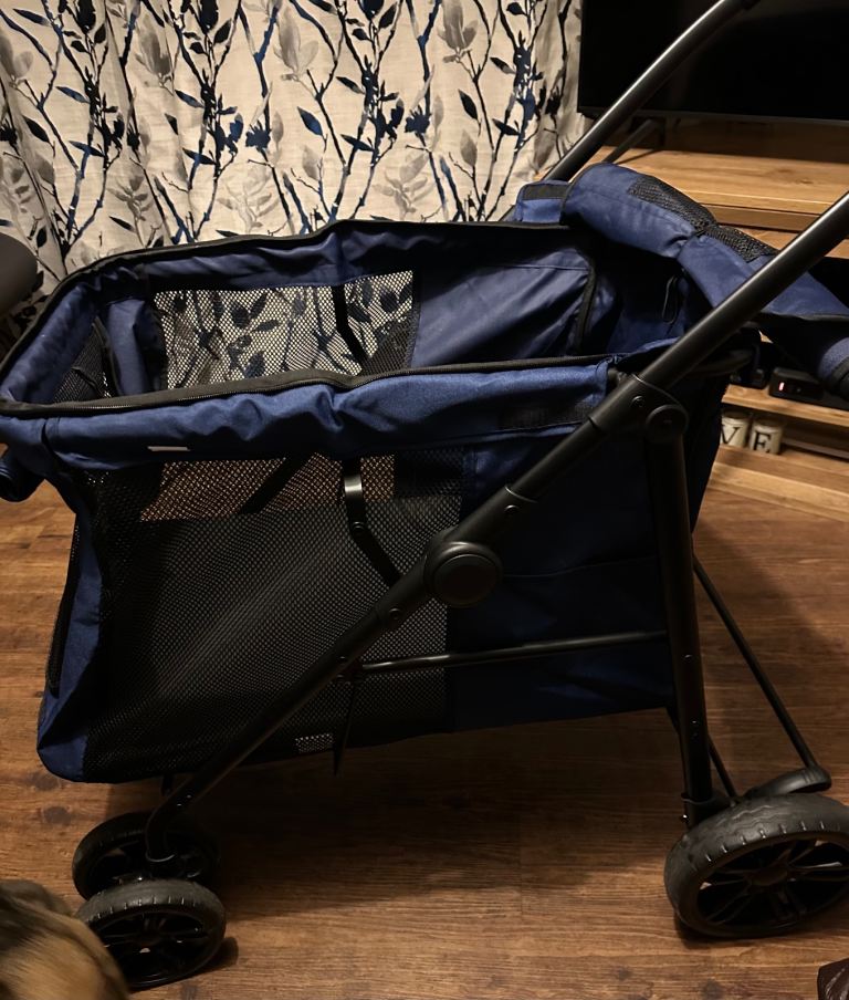 Posting for 16+ yearsPawHut Blue Foldable Pet Stroller with mesh window (larger than a normal pet stroller).