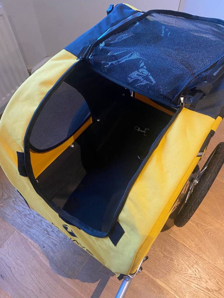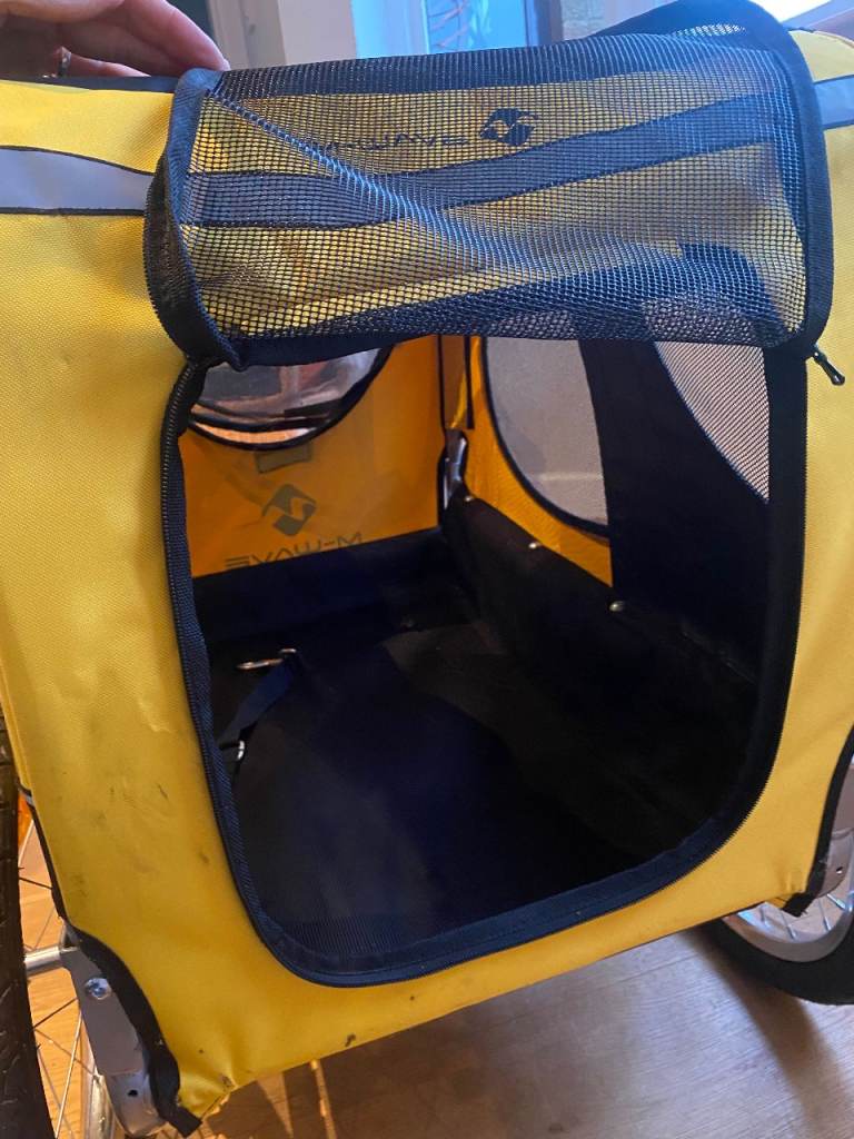 Selling as unfortunately our dog didn't take to the trailer - mainly as she's bit older and doesn't enjoy travelling in a car either. It would be best to introduce this to your dog as a puppy. My advice would be to start with just having trailer with no wheels in the house and get dog comfortable going in and out. Then add the wheels and repeat in/out training. Follow up with very short time with dog in trailer and just walking the bike and build up to cycling with the dog.